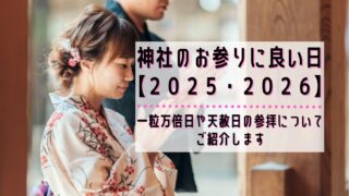 開運神社のお参りに良い日【2025・2026】一粒万倍日や天赦日の参拝についてご紹介します 2025年、2026年の神社にお参りに行くと良い日はいつでしょうか。「一粒万倍日」や「天赦日」の神社参拝についてご紹介いたします。 2021.08.12 2025.10.03開運